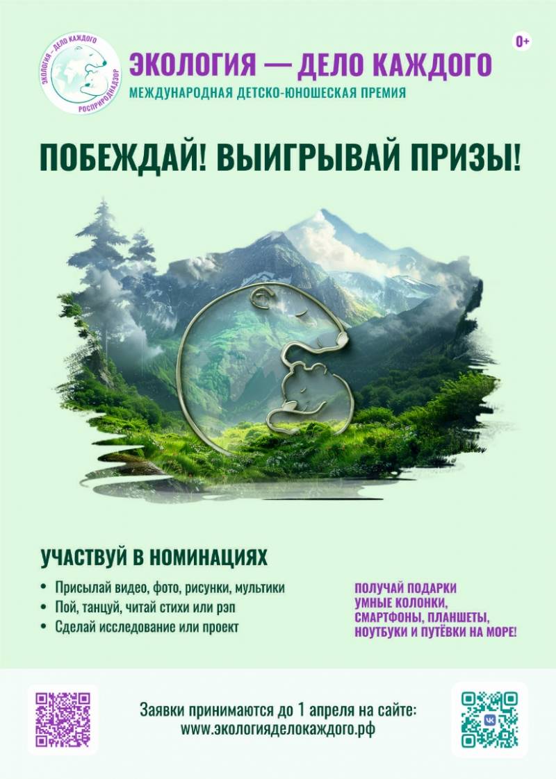 Подробная информация о премии, правилах участия и номинациях доступна на сайте: экологияделокаждого.рф. Присоединяйтесь к премии в социальных сетях: Telegram: https://t.me/eco_umka ВКонтакте: https://vk.com/eco_umka | |